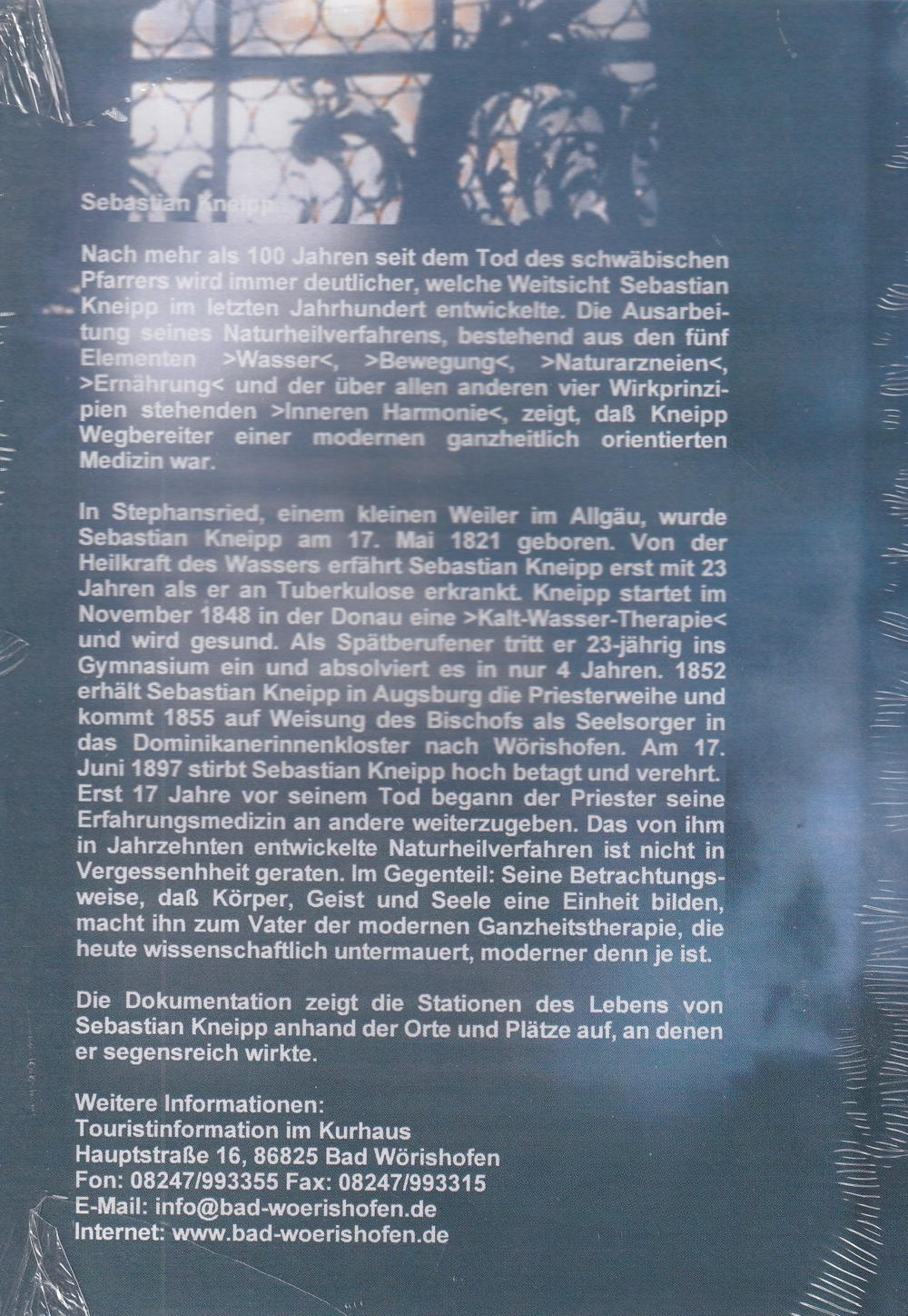Nach mehr als 100 Jahren seit dem Tod des schwäbischen Pfarrers wird immer deutlicher, welche Weitsicht Sebastian . Kneipp im letzten Jahrhundert entwickelte. Die Ausarbeitung seines Naturheilverfahrens, bestehend aus den fünf Elementen >Wasser<, >Bewegung <, >Naturarzneien <, >Ernährung< und>Inneren Harmonie<, zeigt, dass Kneipp Wegbereiter einer modernen ganzheitlich orientierten Medizin war.