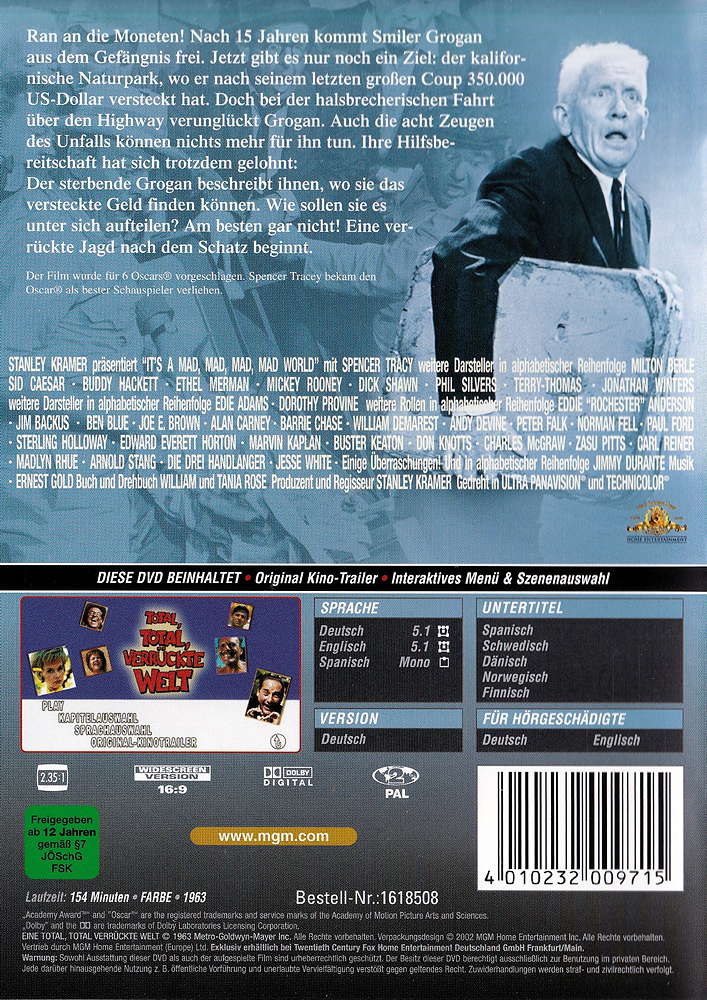 Ran an die Moneten! Nach 15 Jahren kommt Smiler Grogan aus dem Gefängnis frei. Jetzt gibt es nur noch ein Ziel: der kalifornische Naturpark, wo er nach seinem letzten grossen Coup 350.000 US-Dollar versteckt hat. Doch bei der halsbrecherischen Fahrt über den Highway verunglückt Grogan. Auch die acht Zeugen des Unfalls können nichts mehr für ihn tun. Ihre Hilfsbereitschaft hat sich trotzdem gelohnt: Der sterbende Grogan beschreibt ihnen, wo sie das versteckte Geld finden können. Wie sollen sie es unter sich aufteilen? Am besten gar nicht! Eine verrückte Jagd nach dem Schatz beginnt.