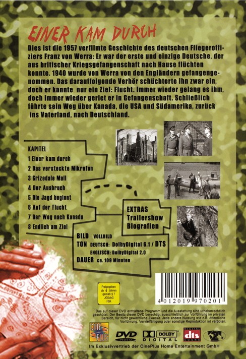 1940: Die Schlacht um England ist auf ihrem Höhepunkt. Aus dem dunstigen Himmel trudelt eine beschädigte Messerschmitt auf den Boden. Der Pilot Franz von Werra wird gefangengenommen. Das anschliessende Verhör kann ihn zwar einschüchtern, hindert ihn aber nicht an seinem einzigen Ziel: Flucht. So beginnt die wahre und überaus dramatische Geschichte des Franz von Werra. Immer wieder gelingt die Flucht. Immer wieder gerät er in Gefangenschaft. Bis er bei seiner letzten spektakulärsten Flucht seine Verfolger endgültig abschüttelt...