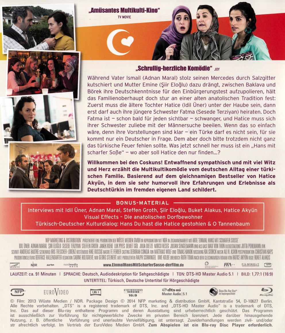 Während Vater Ismail stolz seinen Mercedes durch Salzgitter kutschiert und Mutter Emine dazu drängt, zwischen Baklava und Börek ihre Deutschkenntnisse für den Einbürgerungstest aufzupolieren, hält er doch stur an einer alten anatolischen Tradition fest: Zuerst muss die ältere Tochter Hatice unter der Haube sein, dann erst darf auch ihre jüngere Schwester Fatma heiraten.Doch Fatma ist - schon bald für jeden sichtbar - schwanger, und Hatice muss sich ihrer Schwester zuliebe mit der Männersuche beeilen. Wenn das so einfach wäre, denn ihre Vorstellungen sind klar - ein Türke darf es nicht sein, für sie kommt nur ein Deutscher in Frage. Dem aber doch bitte trotzdem nicht ganz das türkische Feuer fehlen sollte. Was jetzt schnell her muss ist ein "Hans mit scharfer Sosse" - wo aber soll Hatice den nur finden..?