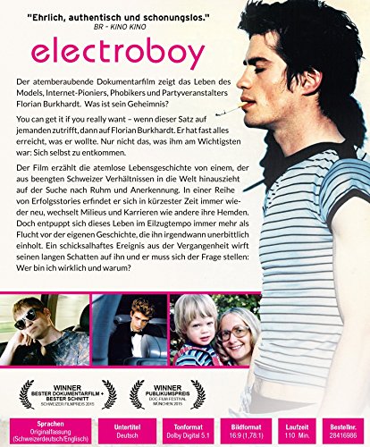 You can get it if you really want. Wenn dieser Satz auf jemanden zutrifft, dann auf Florian Burkhardt. Er hat fast alles erreicht, was er wollte. Nur nicht das, was ihm am Wichtigsten war: Sich selbst zu entkommen. Der Dokumentarfilm "Electroboy" erzählt die atemlose Lebensgeschichte von einem, der aus beengten Schweizer Verhältnissen in die Welt hinauszieht auf der Suche nach Ruhm und Anerkennung. In einer Reihe von Erfolgsstories erfindet er sich in kürzester Zeit immer wieder neu, wechselt Milieus und Karrieren wie andere ihre Hemden. Doch entpuppt sich dieses Leben im Eilzugtempo immer mehr als Flucht vor der eigenen Geschichte, die ihn irgendwann unerbittlich einholt. Ein schicksalhaftes Ereignis aus der Vergangenheit wirft seinen langen Schatten auf ihn und er muss sich der Frage stellen: Wer bin ich wirklich und warum?