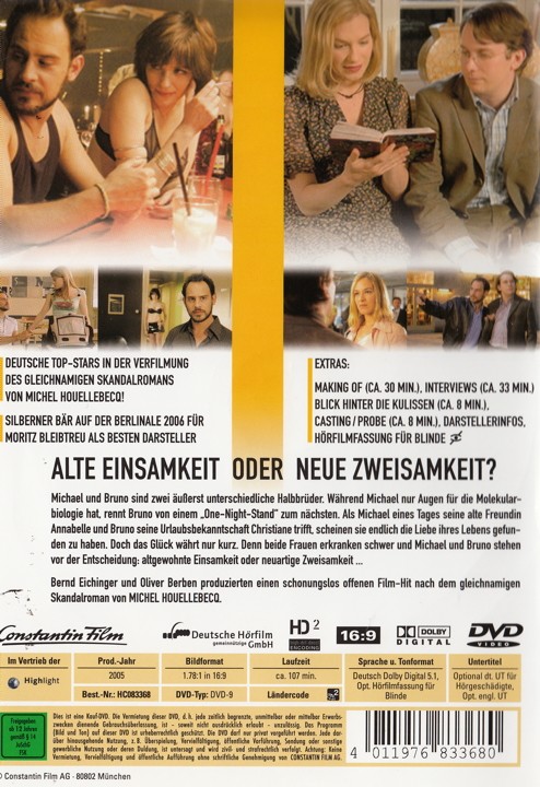 Michael und Bruno sind zwei äusserst unterschiedliche Halbbrüder. Während Michael nur Augen für die Molekularbiologie hat, rennt Bruno von einem "One-Night-Stand" zum nächsten. Als Michael eines Tages seine alte Freundin Anabelle und Bruno seine Urlaubsbekanntschaft Christiane trifft, scheinen sie endlich die Liebe ihres Lebens gefunden zu haben. Doch das Glück währt nur kurz. Denn beide Frauen erkranken schwer und Michael und Bruno stehen vor der Entscheidung: altgewohnte Einsamkeit oder neuartige Zweisamkeit...
