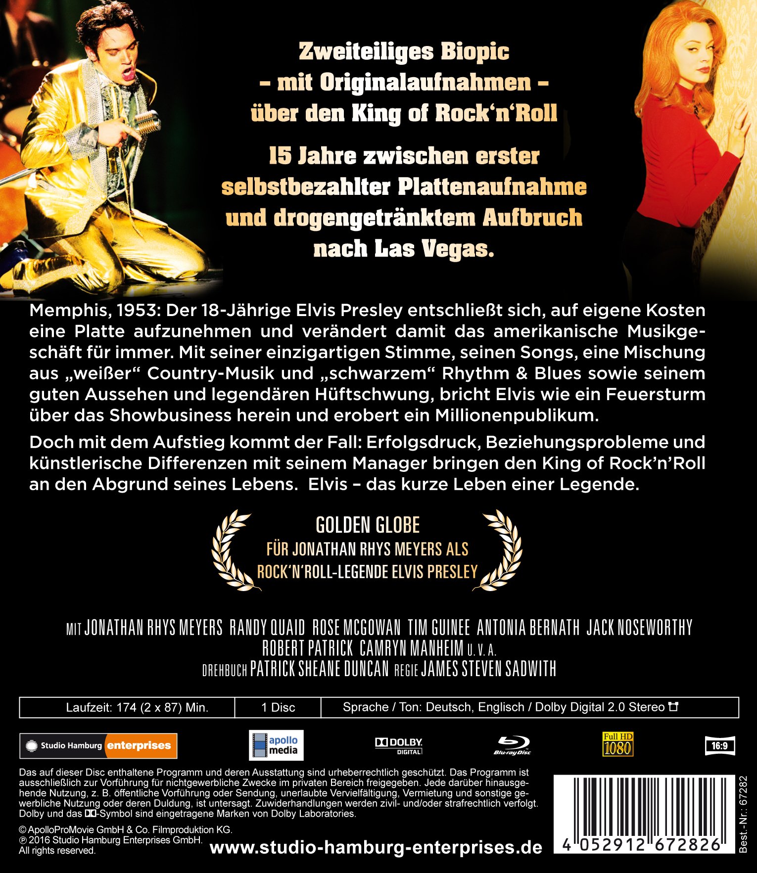 Zweiteiliges TV-Biopic über den King of Rock'n'Roll - zehn Jahre zwischen erster selbstbezahlter Plattenaufnahme und drogentränktem Aufbruch nach Las Vegas. Mitte der 50er erregt im Süden der USA der junge Sänger Elvis Presley die Aufmerksamkeit von Fans und Medien. Er mischt klassischen Countrysound mit der Musik der Schwarzen und liefert dazu eine aufsehenerregende Bühnenshow. Mit Hilfe des versierten Managers Colonel Parker wird aus der neuen Musik ein Trend und aus dem lokalen Phänomen ein internationaler Superstar. Als Presley jedoch mit seinem Drang nach künstlerischer Weiterentwicklung bei Parker auf taube Ohren stösst, kommt es zur Krise zwischen den Partnern. Jonathan Rhys Meyers gewann für seine Darstellung der Rock'n'Roll-Legende Elvis Presley den Golden Globe.