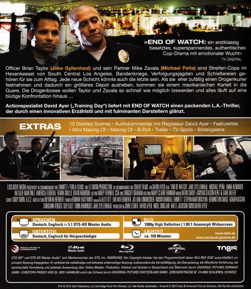 Officer Brian Taylor (Jack Gyllenhaal) und Officer Mike Zavala (Michael Peña) sind Streifencops im Hexenkessel von South Central Los Angeles. Bandenkriege, Verfolgungsjagden und Schiessereien gehören für sie zum Alltag. Jede neue Schicht könnte auch die letzte sein. Als sie eher zufällig einen Drogenkurier festnehmen und dadurch ein grösseres Depot ausheben, kommen sie einem mexikanischen Kartell in die Quere. Die Drogenbosse wollen Taylor und Zavala so schnell wie möglich loswerden und alles läuft auf eine blutige Konfrontation hinaus...