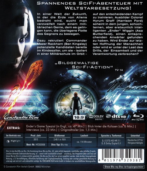 - Titel Ender's Game - Das grosse Spiel [Blu-ray]