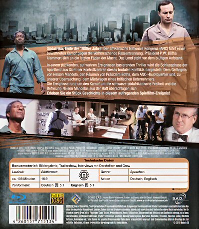 In einem packenden, auf wahren Ereignissen basierenden Thriller wird die Schlussphase der Apartheid aus Sicht der Kontrollzentren dieses brutalen Konflikts dargestellt: Dem Gefängnis von Nelson Mandela, den Räumen von Präsident Botha, dem ANC-Hauptquartier und, zu unserer Überraschung, dem Mietwagen eines britischen Unternehmers. Die Ereignisse rund um den Kampf um die schwarze südafrikanische Freiheit und die Befreiung Nelson Mandelas aus der Haft überschlagen sich. Erleben Sie ein Stück Geschichte in diesem bewegenden Spielfilm-Ereignis!
