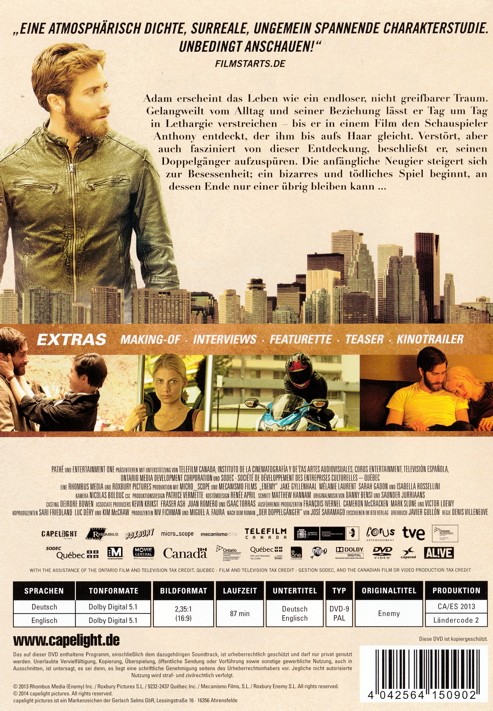 Adam erscheint das Leben wie ein endloser, nicht greifbarer Traum. Gelangweilt vom Alltag und seiner Beziehung lässt er Tag um Tag in Lethargie verstreichen – bis er in einem Film den Schauspieler Anthony entdeckt, der ihm bis aufs Haar gleicht. Verstört, aber auch fasziniert von dieser Entdeckung, beschliesst er, seinen Doppelgänger aufzuspüren. Die anfängliche Neugier steigert sich zur Besessenheit; ein bizarres und tödliches Spiel beginnt, an dessen Ende nur einer übrig bleiben kann ...