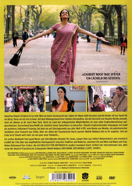 Hausfrau Shashi ist es leid: Weil sie keine Uni besucht hat, haben ihr Mann und die Kinder oft nur Spott für sie übrig. Denn sie tut sich schwer, mit dem Bildungsstand ihrer Familie mitzuhalten. Als die Hochzeit von Shashis Nichte ansteht, reist sie alleine zu ihr nach New York. Doch im Land der unbegrenzten Möglichkeiten ist man ohne Englischkenntnisse aufgeschmissen. Kurzerhand beschliesst sie, heimlich einen Sprachkurs zu besuchen. Shashis Englischstunden entpuppen sich bald als munteres Selbstwert-Training, bei dem sie auf Gleichgesinnte aus aller Welt trifft: eine Nanny aus Mexiko, ein pakistanischer Taxifahrer, eine Friseurin aus China. Aber vor allem der französische Koch Laurent hat es ihr angetan. Und am Ende lernt Shashi weit mehr als ein paar neue Vokabeln...