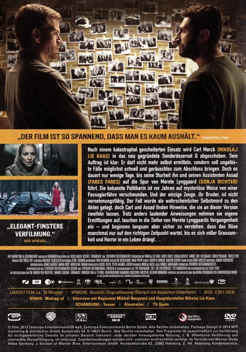 Nach einem katastrophal gescheiterten Einsatz wird Carl Mørck in die neu gegründete Sonderabteilung Q abgeschoben. Sein Auftrag ist klar: Er darf nicht mehr selbst ermitteln, sondern soll ungelöste Fälle möglichst schnell und geräuschlos zum Abschluss bringen. Doch es dauert nur wenige Tage, bis seine Sturheit ihn und seinen Assistenten Assad auf die Spur von Merete Lynggaard führt. Die bekannte Politikerin ist vor Jahren auf mysteriöse Weise von einer Passagierfähre verschwunden. Und der einzige Zeuge, ihr Bruder, ist nicht vernehmungsfähig. Der Fall wurde als wahrscheinlicher Selbstmord zu den Akten gelegt, doch Carl und Assad finden Hinweise, die sie an dieser Version zweifeln lassen. Trotz anders lautender Anweisungen nehmen sie eigene Ermittlungen auf, tauchen in die Tiefen von Merete Lynggaards Vergangenheit ein - und beginnen langsam aber sicher zu verstehen, dass das Böse manchmal nur auf den richtigen Zeitpunkt wartet, bis es sich voller Grausamkeit und Horror in ein Leben drängt...