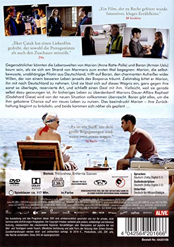 Gegensätzlicher könnten die Lebenswelten von Marion und Baran kaum sein, als sie sich am Strand von Marmaris zum ersten Mal begegnen: Marion, die selbstbewusste, unabhängige Pilotin aus Deutschland, trifft auf Baran, den charmanten Aufreisser wider Willen, der von einem besseren Leben jenseits des Bosporus träumt. Zielstrebig bittet er Marion, ihn mit nach Deutschland zu nehmen. Und sie lässt sich auf dieses Wagnis ein, ganz gegen ihre sonst so überlegte, reservierte Art, und schliesst einen Deal mit ihm. Vielleicht, weil sie gerade selbst dazu gezwungen ist, ihr bisheriges Leben zu überdenken?
