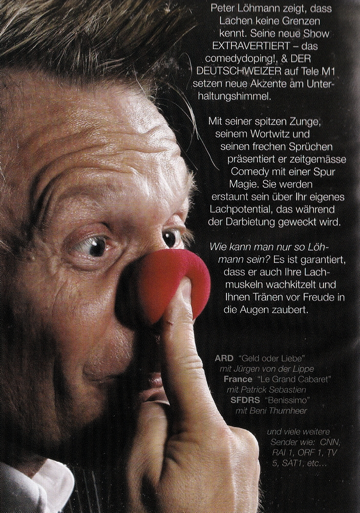 Mit seiner spitzen Zunge, seinem Wortwitz und seinen frechen Sprüchen präsentiert er zeitgemässe Comedy mit einer Spur Magie. Sie werden erstaunt sein über Ihr eigenes Lachpotential, das während der Darbietung geweckt wird.