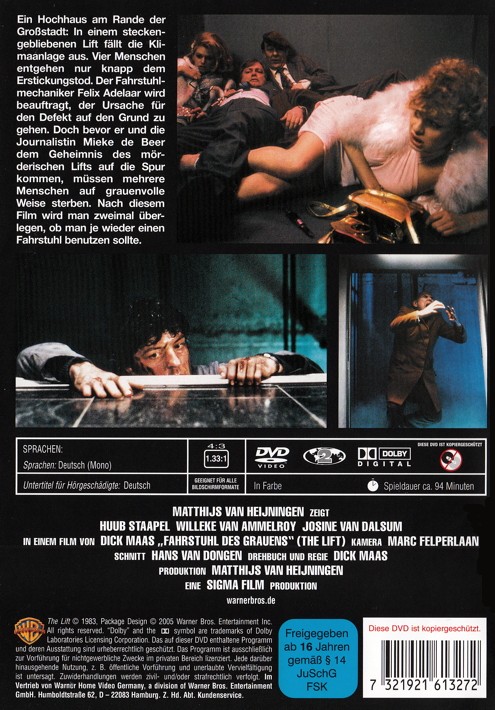 Ein Hochhaus am Rande der Großstadt: In einem stecken- gebliebenen Lift fällt die Klimaanlage aus. Vier Menschen entgehen nur knapp dem Erstickungstod. Der Fahrstuhlmechaniker Felix Adelaar wird beauftragt, der Ursache für den Defekt auf den Grund zu gehen. Bevor er und die Journalistin Mieke de Beer dem Geheimnis des mörderischen Lifts auf die Spur kommen, müssen mehrere Menschen auf grauenvolle Weise sterben. Nach diesem Film wird man zweimal überlegen, ob man je wieder einen Fahrstuhl benutzen sollte.