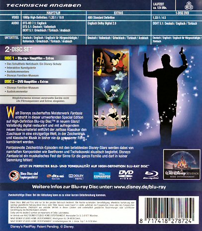 Fantasievolle Zeichentrick-Episoden mit den beliebtesten Disney-Stars werden dabei von namhaften Komponisten wie Beethoven und Tschaikowski akustisch begleitet. Disneys Fantasia ist ein musikalisches Fest der Sinne für die ganze Familie und darf in keiner Sammlung fehlen!