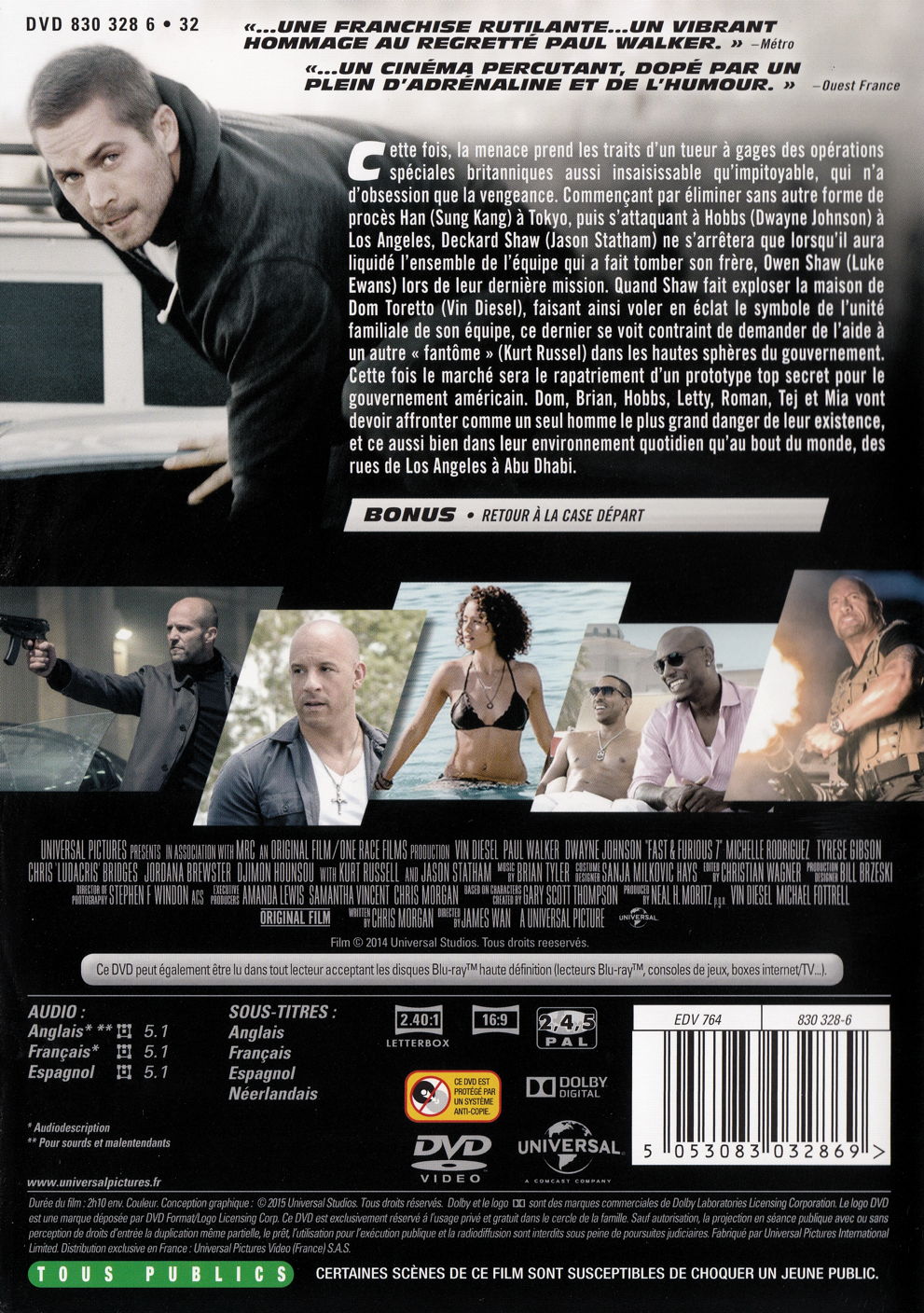 Vin Diesel, Paul Walker, Jason Statham, Michelle Rodriguez, Dwayne Johnson, Jordana Brewster, Tyrese Gibson, Ludacris, Lucas Black, Kurt Russell...Nathalie Emmanuel, Elsa Pataky, Gal Gadot, John Brotherton, Luke Evans, Tony Jaa, Djimon Hounsou, Noel Gugliemi, Ali Fazal, Sung Kang