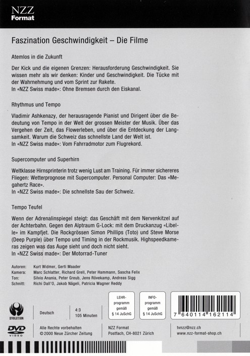 - Titel Faszination Geschwindigkeit - NZZ Format [DVD]