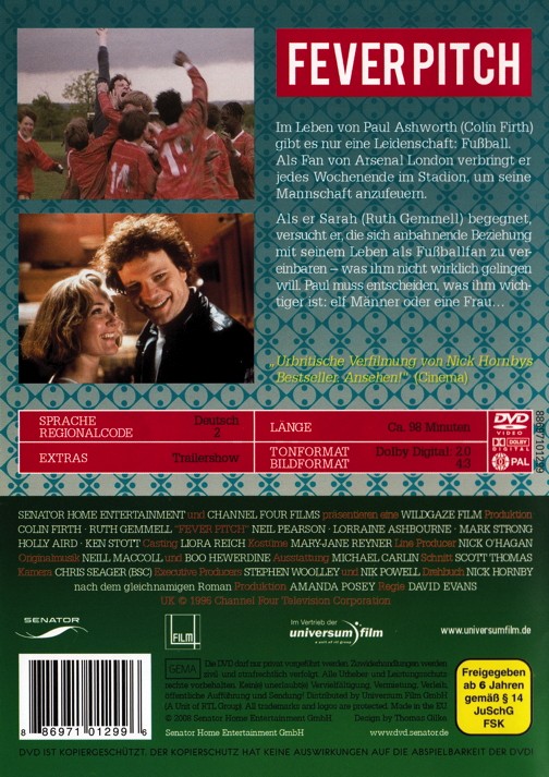 Basierend auf Nick Hornbys autobiographischer Erzählung kombiniert Regisseur David Evans in 'Fever Pitch - Ballfieber' britischen Humor mit einer Ode an den Fußball, wie diese nur im Mutterland des Fußballs zu finden sein kann. Mit Colin Firth als liebenswertem Fußballfanatiker, der die Geduld von Sarah auf eine harte, wenn auch gleich sehr unterhaltsame Probe stellt.