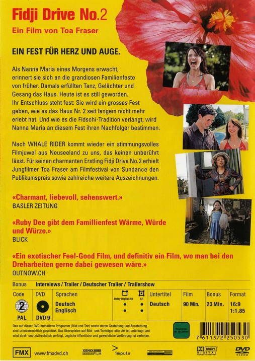 Im Mittelpunkt von Fidji Drive No. 2 steht die so zauberhafte wie exzentrische Nanna Maria. Sie ist das Oberhaupt einer Fidschi-Familie, die in einer Vorstadtsiedlung von Auckland (Neuseeland) lebt. Ihr Haus trägt die Nr. 2. Als Nanna Maria eines Morgens erwacht, erinnert sie sich an die grandiosen Familienfeste von früher. Damals erfüllten Tanz, Gelächter und Gesang das Haus. Heute ist es still geworden. Ihr Entschluss steht fest: Sie wird ein grosses Fest geben, wie es das Haus Nr. 2 seit langem nicht mehr erlebt hat. Und wie es die Fidschi-Tradition verlangt, wird Nanna Maria an diesem Fest ihren Nachfolger bestimmen.