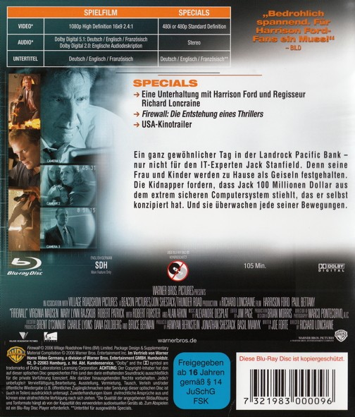 Jack Stanfield est l'un des meilleurs experts en sécurité informatique des Etats-Unis. Cadre supérieur d'une grande banque de Seattle, il a mis au point un "pare-feu" ultrasophistiqué, qu'aucun hacker n'a jamais réussi à pénétrer. A la tête d'un de six hommes armés, un gangster force la porte des Stanfield et prend en otage sa femme et les enfants. Pour sauver sa famille d'une mort certaine, Jack va devoir neutraliser son propre firewall, détourner 100 millions de dollars et les virer avant 24 heures sur le compte du gangster...