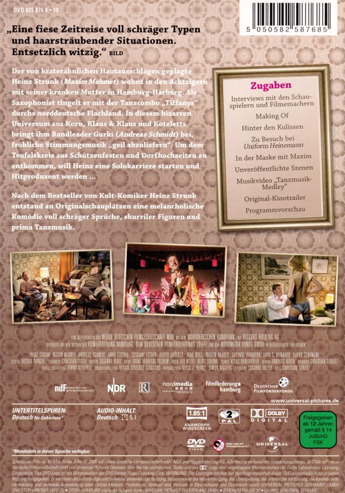 Der von kraterähnlichen Hautausschlägen geplagte Heinz Strunk (Maxim Mehmet) wohnt in den Achtzigern mit seiner kranken Mutter in Hamburg-Harburg. Als Saxophonist tingelt er mit der Tanzcombo "Tiffanys" durchs norddeutsche Flachland. In diesem bizarren Universum aus Korn, Klaus & Klaus und Koteletts bringt ihm Bandleader Gurki (Andreas Schmidt) bei, fröhliche Stimmungsmusik "geil abzuliefern". Um dem Teufelskreis aus Schützenfesten und Dorfhochzeiten zu entkommen, will Heinz eine Solokarriere starten und Hitproduzent werden...
