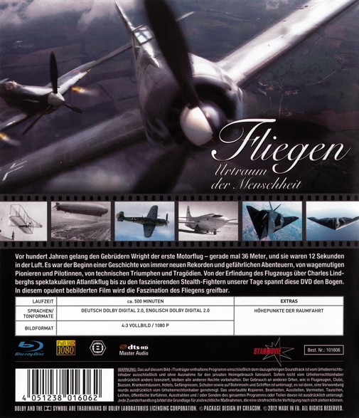 Vor hundert Jahren gelang den Gebrüdern Wright der erste Motorflug - gerade mal 36 Meter, und sie waren 12 Sekunden in der Luft. Es war der Beginn einer Geschichte von immer neuen Rekorden und gefährlichen Abenteuern, von wagemutigen Pionieren und Pilotinnen, von technischen Triumphen und Tragödien. Von der Erfindung des Flugzeugs über Charles Lindberghs spektakulären Antikflug bis zu den faszinierenden Stealth-Fightern unserer Tage spannt diese DVD den Bogen. In diesem opulent bebilderten Film wird die Faszination des Fliegens greifbar.