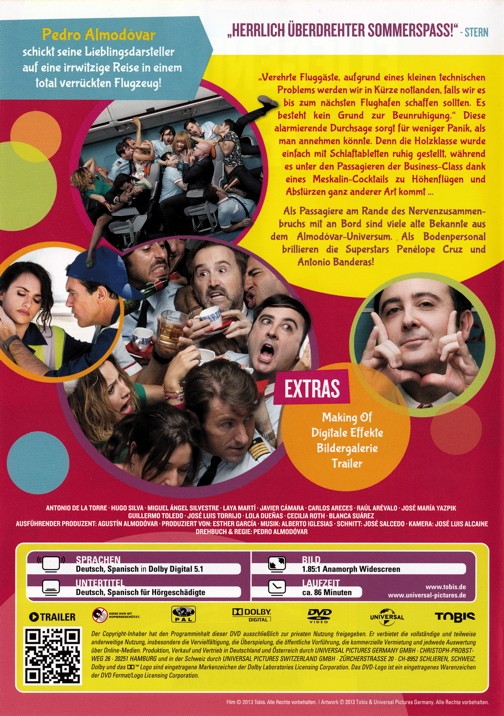 "Verehrte Fluggäste, aufgrund eines kleinen technischen Problems werden wir in Kürze notlanden, falls wir es bis zum nächsten Flughafen schaffen sollten. Es besteht kein Grund zur Beunruhigung, aber ein Gebet könnte sicherlich nicht schaden. Wir wünschen noch einen angenehmen Flug." Die Durchsage der Chef-Stewards Joserra (Javier Cámara), Fajas (Carlos Areces) und Ulloa (Carlos Areces) sorgt jedoch für weniger Panik, als man annehmen könnte, denn die meisten Passagiere sind bereits von Schlaftabletten und Meskalin im Tomatensaft völlig benebelt. Das Mittelchen im Saft sorgt zudem dafür, dass sich die enthemmten Reisenden bald grenzenlose Freiheiten nehmen. Es kommt zu Heulkrämpfen, Seelen-Offenbarungen und Ganzkörperstriptease. Da ausserdem der Funkverkehr der Piloten Benito (Hugo Silva) und Alex (Antonio de la Torre) mit dem Personal am Boden nur noch über die Lautsprecher funktioniert, können diese den Wahnsinn auch noch live mitanhören.