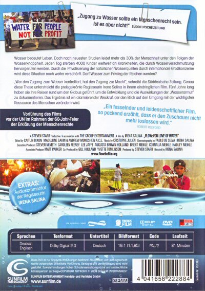 Wasser bedeutet Leben. Doch nach neuesten Studien leiden mehr als 30% der Menschheit unter den Folgen der Wasserknappheit. Jeden Tag sterben 4000 Kinder weltweit an Krankheiten, die durch Wasserverschmutzung hervorgerufen werden. Durch die Privatisierung der natürlichen Wasserquellen durch internationale Grosskonzerne wird diese Situation noch weiter verschärft. Darf Wasser zum Privileg der Reichen werden?
