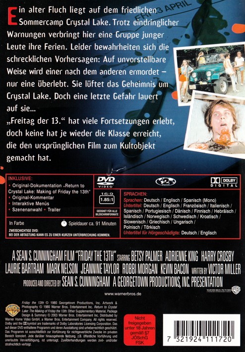 Ein alter Fluch liegt auf dem friedlichen Sommercamp Crystal Lake. Trotz eindringlicher "Warnungen verbringt hier eine Gruppe junger Leute ihre Ferien. Leider bewahrheiten sich die schrecklichen Vorhersagen: Auf unvorstellbare Weise wird einer nach dem anderen ermordet - nur eine überlebt. Sie lüftet das Geheimnis des Crystal Lake. Doch eine letzte Gefahr lauert auf sie ...