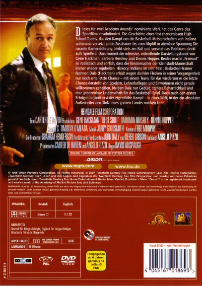 Dieses für zwei Academy Awards nominierte Werk hat das Genre des Sportfilms revolutioniert. Die Geschichte eines fast chancenlosen High School-Teams, das den Kampf um die Basketball-Meisterschaften von Indiana aufnimmt, versetzt jeden Zuschauer bis zum Abpiff in atemlose Spannung. Die rasante Kameraführung bleibt stets am Ball und versetzt das Publikum direkt aufs Spielfeld. Dazu kommt die intensive, mitreißende Darstellungskunst von Gene Hackman, Barbara Hershey und Dennis Hopper. Beides macht Freiwurf so realistisch und ehrlich, dass die Kinobesucher der Kleinstadt-Mannschaft immer wieder zujubelten. Hickory, Indiana im Jahr 1951: Basketball-Trainer Norman Dale erhält wegen dunkler Flecken in seiner Vergangenheit nur noch eine letzte Chance - mit einem Team, für das wiederum er die letzte Chance darstellt. Von Spielern, Lehrerkollegen und Einwohnern nicht gerade willkommen geheißen, bleiben Dale nur Geduld, tapfere Beharrlichkeit und eine grenzenlose Leidenschaft für das Basketball-Spiel. Doch nach den ersten Erfolgen beginnt erst der eigentliche Kampf - in einer Welt, in der ein absoluter Außenseiter den Stolz eines ganzen Landes wecken kann.