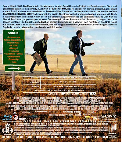 Deutschland, 1989: Die Mauer fällt, die Menschen jubeln, David Hasselhoff singt am Brandenburger Tor, und ganz Berlin ist eine Party. Auch Veit (Friedrich Mücke) freut sich: Mit seinem Begrüßungsgeld will er nach San Francisco, zum westlichsten Punkt der Welt. Zumindest erzählt er das seinem besten Freund Tom (Matthias Schweighöfer), der prompt das große Abenteuer wittert und unbedingt mitkommen will. Doch in Wahrheit sucht Veit seinen Vater, der in die Staaten ausgewandert ist, als Veit noch ein Kind war. Nur ein Bündel Postkarten, abgestempelt an Veits Geburtstag in einem Postamt in San Francisco, zeugen noch von dessen Existenz – Veit möchte unbedingt an seinem Geburtstag in 3 Wochen dort sein. Doch das Geld reicht nur bis New York, es ist bitterkalter Winter, und die Jungs kommen mit „Friendship!“, dem einzigen Wort auf Englisch, das sie beherrschen, auch nicht wirklich weiter...