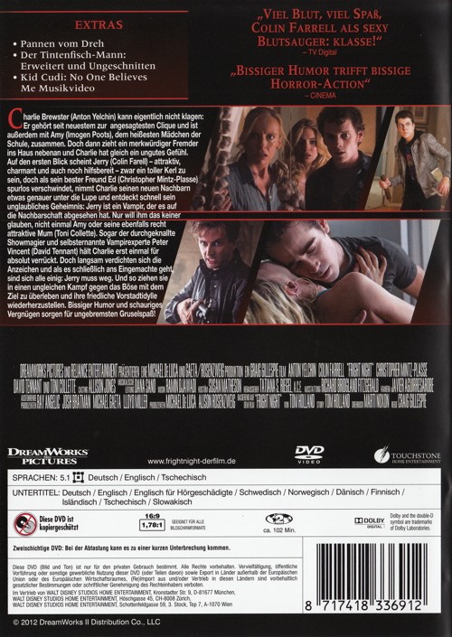 Charlie Brewster (Anton Yelchin) kann eigentlich nicht klagen: Er gehört zur angesagtesten Clique und ist ausserdem mit Amy (Imogen Poots), dem heissesten Mädchen der Schule, zusammen. Doch dann zieht ein merkwürdiger Fremder ins Haus nebenan, und Charlie beschleicht ein ungutes Gefühl. Auf den ersten Blick scheint Jerry (Colin Farell) - attraktiv, charmant und hilfsbereit - ein toller Kerl zu sein. Doch als sein bester Freund Ed (Christopher Mintz-Plasse) spurlos verschwindet, nimmt Charlie seinen neuen Nachbarn etwas genauer unter die Lupe und entdeckt schnell sein unglaubliches Geheimnis: Jerry ist ein Vampir, der es auf die Nachbarschaft abgesehen hat. Nur will ihm das keiner glauben, nicht einmal Amy oder seine Mutter (Toni Collette). Sogar der durchgeknallte Showmagier und selbsternannte Vampirexperte Peter Vincent (David Tennant) hält Charlie erst einmal für verrückt - bis es in der Vorstadtidylle schliesslich zum Kampf gegen das Böse kommt. Bissiger Humor und schauriges Vergnügen sorgen in dieser Horrorkomödie für Gruselspass!