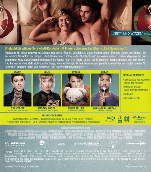 Nachdem für Mikey unerwartet Schluss mit seiner Ehe ist, beschließen seine beiden besten Freunde, der draufgängerische Jason und der beziehungsscheue Daniel, ihn auf andere Gedanken zu bringen. Der Plan ist so simpel wie einleuchtend: Statt Herzschmerz soll nun das Single-Dasein genossen werden. Männerfreundschaft und Partys sind ab sofort der Fokus in ihrem Leben, auf eine ernsthafte Beziehung wollen sie sich nach all den Enttäuschungen nicht mehr einlassen. Fortan nutzen sie die Freiheit der Ungebundenheit und klappern New Yorks Clubs und Bars auf der Suche nach One-Night-Stands ab. Doch bald schon lernt Jason die charmante Ellie kennen und beginnt – ganz gegen seine Art - Gefühle für sie zu entwickeln. Als sich herausstellt, dass auch Daniel und Mikey sich in ihre jeweiligen Traumfrauen verguckt haben, stellt sich für die drei Freunde die Frage, wie es mit ihren jeweiligen Beziehungen weiter gehen soll, aber noch viel wichtiger: wie sie die heimliche Beziehung jeweils voreinander verstecken. Nicht nur deshalb kommt es dabei zu einer nicht enden wollenden Kette von peinlichen aber urkomischen Situationen.