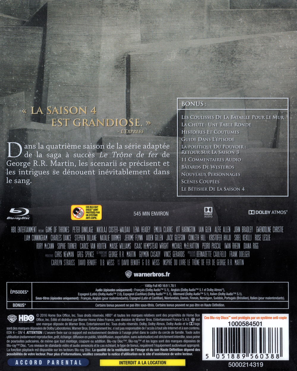 - Titel Game of Thrones - Saison 4 [Blu-ray]