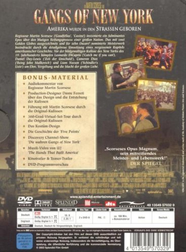 In der Mitte des neunzehnten Jahrhunderts in New York: Amerika wurde zu dieser Zeit von einer wahren Einwanderungsflut überschwemmt. Ausgelöst durch eine schwere Hungernot in Irland kamen tausende von Iren übers Meer nach New York, das Tor zum Land der unbegrenzten Möglichkeiten. Die gewaltigen Menschenmassen strömten in die ärmsten Viertel der Stadt und schnell bildeten sich rivalisierende Gangs, die die Einwohner in einem bisher unbekannten Masse terrorisierten. Das Elendsviertel Five Points wurde zum Sammelbecken für Einwanderer, geprägt von kaum vorstellbaren Zuständen. Die Bandenkriminalität wuchs, Armut, Sittenlosigkeit, politische Korruption und blutige Strassenkämpfe übernahmen die Regie in einem täglichen Überlebenskampf. Five Pointe wurde zu einer Hölle aus Gewalt, Hass und Angst. Die Regierung stand dem zunächst machtlos gegenüber, hatte selbst grosse Probleme mit dem kurz bevorstehenden Bürgerkrieg. Es gab nicht genug Freiwillige für einen Krieg dieser Grössenordnung und so versuchten die Politiker alles in ihrer Macht Stehende zu tun, um so viele Einwohner wie möglich einzuziehen. Einwanderer wurden direkt nach Verlassen des Schiffes eingebürgert und zur Armee geschickt. Es wurden Versprechungen gemacht und mit allen Mitteln gelockt. Doch viele waren nicht bereit, in einen Krieg zu ziehen, den sie nicht wollten. Es kam zu gewaltigen Strassenschlachten und Aufständen, die Amerika tief erschütterten.