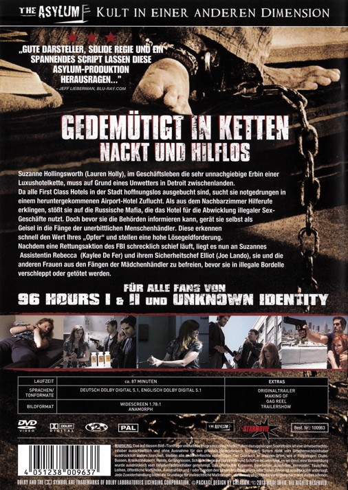 Suzanne Hollingsworth (Lauren Holly), die äußerst hübsche, aber im Geschäftsleben sehr unnachgiebige Erbin einer Luxushotelkette, muss aufgrund eines Unwetters in Detroit zwischenlanden. Da alle First-Class-Hotels in der Stadt hoffnungslos ausgebucht sind, sucht sie notgedrungen in einem heruntergekommenen Airport-Hotel Zuflucht. Als aus dem Nachbarzimmer Hilferufe erklingen, stößt sie auf die russische Mafia, die das Hotel für die Abwicklung illegaler Sex-Geschäfte nutzt. Doch bevor sie die Behörden informieren kann, gerät sie selbst als Geisel in die Fänge der unerbittlichen Menschenhändler. Diese erkennen schnell den Wert ihres „Opfers“ und stellen eine immense Lösegeldforderung. Nachdem eine Rettungsaktion des FBI schrecklich schiefläuft, liegt es nun an Suzannes Assistentin Rebecca (Kaylee DeFer) und ihrem Sicherheitschef Elliot ( Joe Lando), Suzanne und die anderen Frauen aus den Fängen der Mädchenhändler zu befreien, bevor sie in illegale Bordelle im Ausland verschleppt oder getötet werden.