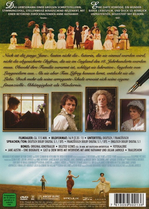 England 1795: Die junge Jane Austen (Anne Hathaway) glaubt fest an die wahre Liebe. Doch ihre Eltern (Julie Walters, James Cromwell) möchten, dass sie des Geldes wegen eine gute Partie macht. Trotzdem weist Jane die Offerten des Neffen der reichen Lady Gresham (Maggie Smith) zurück. Als sie dem attraktiven, aber armen Iren Tom Lefroy (James McAvoy) begegnet, stellt er ihre Welt vollkommen auf den Kopf. Aber können sich die beiden Verliebten auf Dauer über alle gesellschaftlichen Konventionen hinweg setzten?