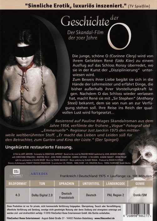Die junge, schöne O wird von ihrem Geliebten René zu einem Ausflug auf das Schloss Roissy überredet, wo sie in der Kunst der "Disziplinierung" unterwiesen wird.