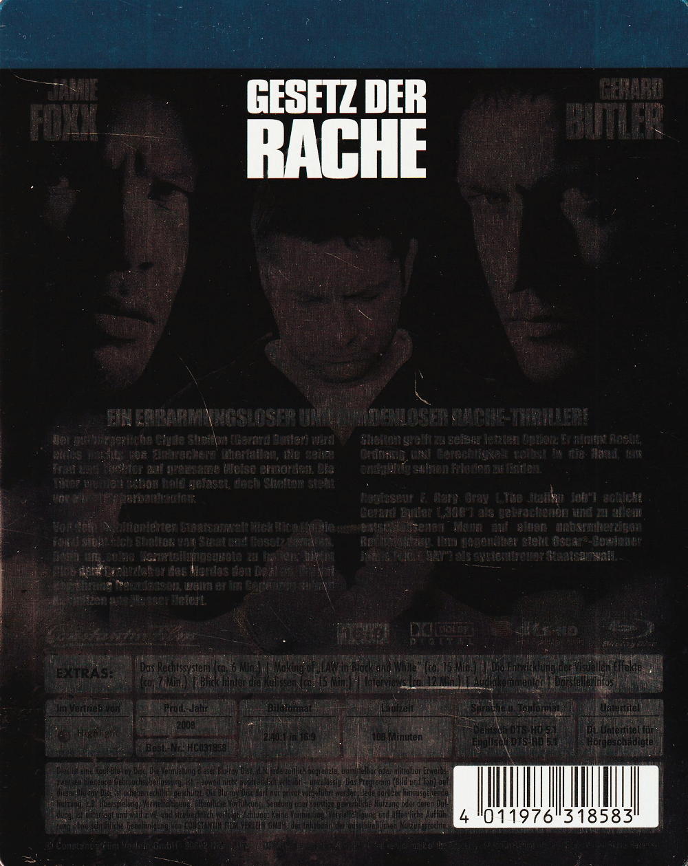 Regisseur F. Gary Gray ("The Italien Job") schickt Gerard Butler ("300") als gebrochenenund zu allem entschlossenen Mann auf einen unbarmherzigen Rachefeldzug. Ihm gegenüber steht Oscar-Gewinner Jamie Foxx ("Ray") als systemtreuer Staatsanwalt.