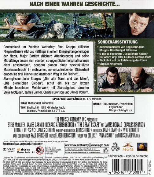 Donald Pleasence, Charles Bronson, James Coburn, James Garner, Richard Attenborough, David McCallum, Heinz Weiss, Ulrich Beiger, Steve McQueen, Gordon Jackson...Til Kiwe, Nigel Stock, Karl-Otto Alberty, Harry Riebauer, Tom Adams, George Mikell, Robert Graf, James Donald, Robert Freitag, Hannes Messemer, Hans Reiser, Lawrence Montaigne, Angus Lennie, William Russell, Jud Taylor, Robert Desmond, John Leyton