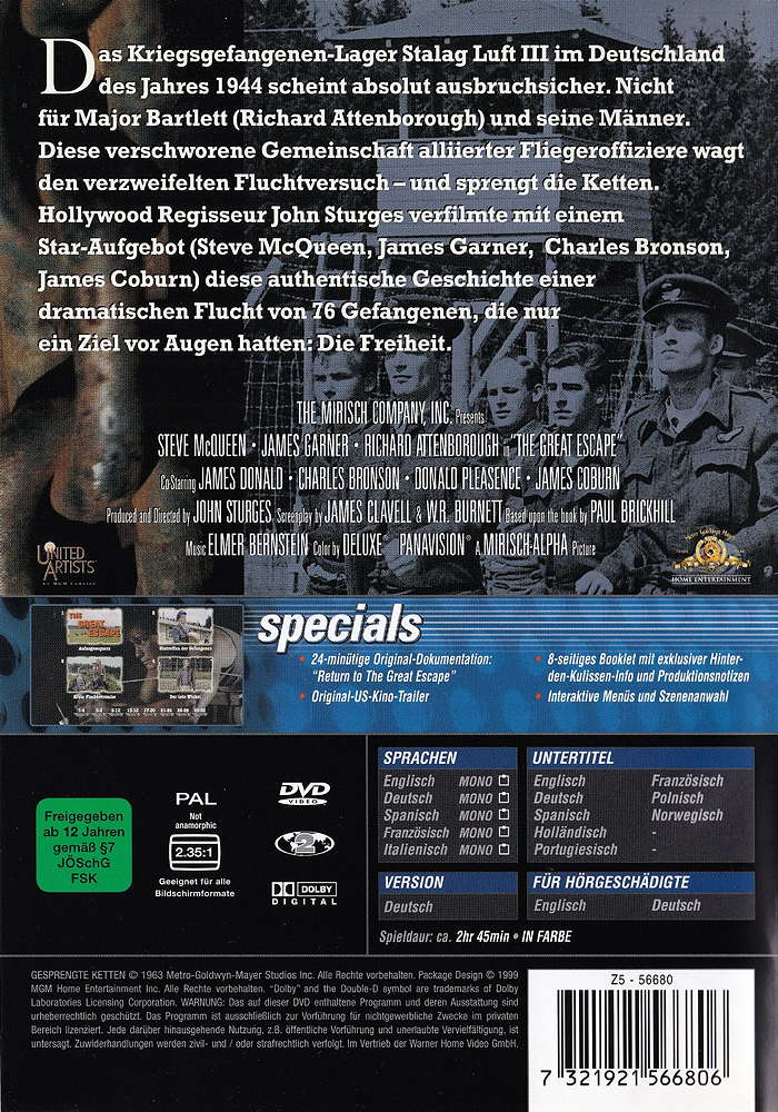 Deutschland im Zweiten Weltkrieg: Eine Gruppe allierter Fliegeroffiziere sitzt als Häftlinge in einem Kriegsgefangenenlager der Nazis. Es gilt also absolut ausbruchssicher - schliesslich sind seine Insassen schon mehrfach aus anderen Lagern entkommen. Doch Major Bartlett und seine Mithäftlinge lassen sich von den strengen Sicherheitsmassnahmen nicht abschrecken. Gemeinsam planen sie einen Massenausbruch.