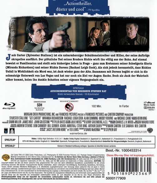 "Sly" Stallone ist zurück: Als schlagkräftiger Geldeintreiber Jack Carter fährt er zur Beerdigung seines Bruders. Bereits auf der Rückreise wird ihm aber klar, dass dieser nicht bei einem Autounfall ums Leben kam, sondern ermordet wurde. Jack will den Mörder finden: Die Witwe des Bruders, ihre Tochter Doreen (Rachel Leigh Cook - "Conspiracy.com"), der ehemalige Arbeitskollege Cyrus Paice (Mickey Rourke - "9 1/2 Weeks") und der Mittelsmann Cliff Brumby (Michale Caine) sind nur einige Verdächtige. - Spannungsgeladener Actionthriller, in dem Sylvester Stallone erneut den harten Mann markiert. Keine Frage: Mit diesem Kerl ist nicht zu spassen!