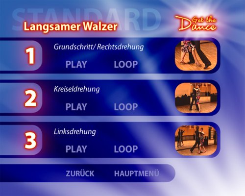 Und der Spass geht weiter: Viele weitere Titel der Reihe 'Get the Dance' sorgen für unendliches Tanzvergnügen. Tanzen lernen in 3 Stufen: Standard: Langsamer Walzer, Tango, Wiener Walzer