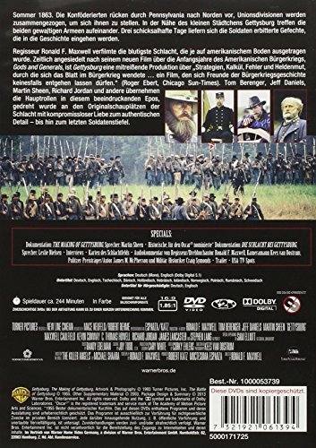 Im Juni 1863, nach mehr als 2 Jahren blutiger Auseinandersetzungen, zieht die konförderierte Armee von Westvirginia unter dem Kommando von Robert E. Lee, einem der besten Militärtaktiker, über den Grenzfluss, um in den Nordstaaten einzumarschieren. 70. 000 Mann ziehen Richtung Norden, um die Soldaten der Union aus ihren Verstecken zu locken und zu vernichten. Drei Tage lang wütet auf den Feldern von Gettysburg eine der blutigsten Schlachten der amerikanischen Geschichte. Insgesamt 40. 000 Soldaten werden dahingemetzelt. Der Ausgang dieser Schlacht entscheidet den Krieg und die Zukunft Amerikas...