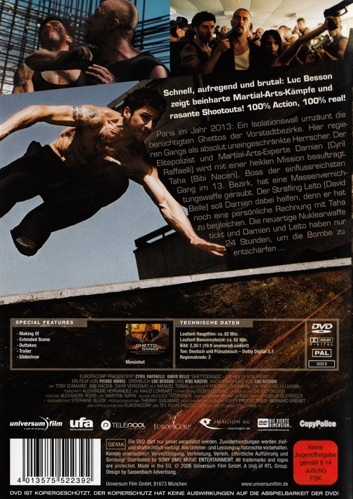 Paris im Jahr 2013: Ein Isolationswall umzäunt die berüchtigten Ghettos der Vorstadtbezirke. Hier regieren Gangs als absolut uneingeschränkte Herrscher. Der Elitepolizist und Martial-Arts-Experte Damien (Cyril Raffaelli) wird mit einer heiklen Mission beauftragt. Taha (Bibi Naceri), Boss der einflussreichsten Gang im 13. Bezirk, hat eine Massenvernichtungswaffe geraubt. Der Sträfling Laito (David Belle) soll Damien dabei helfen, denn er hat noch eine persönliche Rechnung mit Taha zu begleichen. Die neuartige Nuklearwaffe tickt und Damien und Laito haben nur 24 Stunden, um die Bombe zu entschärfen...