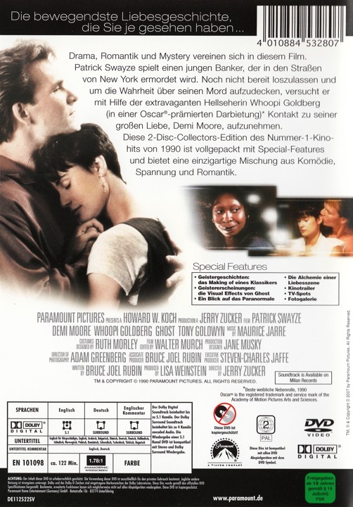 Patrick Swayze, Demi Moore, Whoopi Goldberg, Stephen Root, Vincent Schiavelli, Tony Goldwyn, Rick Aviles, Alma Beltran, Susan Breslau, Charlotte Zucker...Bruce Jarchow, Martina Deignan, Augie Blunt, Gail Boggs, Armelia McQueen, Christopher J. Keene, Minnie Summers Lindsey, Said Faraj, Tom Finnegan, Phil Leeds, J. Christopher Sullivan, Angelina Estrada, Vivian Bonnell, Thom Curley, Rick Kleber