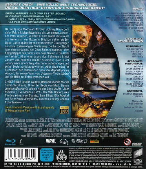 Der blutjunge Motorrad-Akrobat Johnny Blaze geht einen Pakt mit Mephistopheles ein: Um seinen sterbenden Vater zu retten, verkauft er dem Teufel seine Seele und trennt sich von Roxanne Simpson, seiner grossen Liebe. Jahre später ist er ein berühmter Draufgänger, der immer todesmutigere Stunts wagt. Doch in der Nacht ist er dazu verdammt, zum Ghost Rider zu mutieren - dem Kopfgeldjäger des Satans, der böse Seelen in die Hölle verfrachtet. Aber eine Laune des Schicksals bringt Johnny und Roxanne wieder zusammen. Nun sucht Johnny nach einem Weg, den Teufel zu bezwingen und seine Seele zurückzugewinnen. Aber dazu muss er Blackheart, den missratenen Sohn von Mephistopheles stoppen, der seinen Vater vom Unterwelt-Thron stürzen und die Hölle auf Erden entfachen will.