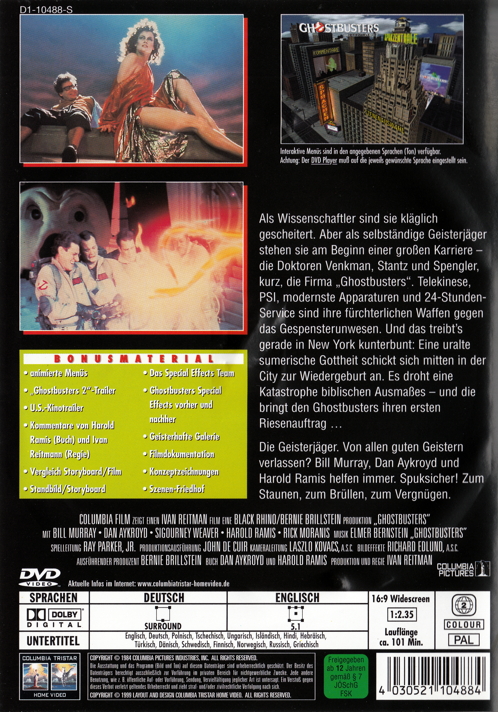 Ghostbusters - Die Geisterjäger. Von allen guten Geistern verlassen? Bill Murray, Dan Aykroyd und Harold Ramis helfen immer. Spuksicher! Zum Staunen, zum Brüllen, zum Vergnügen.