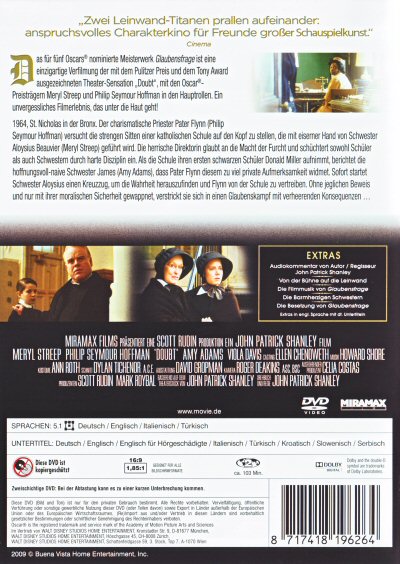 - Schauspieler Meryl Streep, Philip Seymour Hoffman, Amy Adams, Viola Davis, Carrie Preston, Alice Drummond, Audrie Neenan