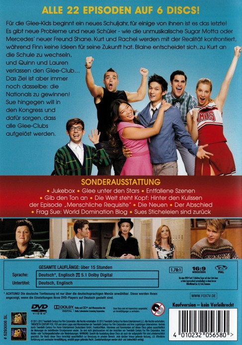 Für die Glee-Kids beginnt ein neues Schuljahr, für einige von ihnen ist es das letzte! Es gibt neue Probleme und neue Schüler - wie die unmusikalische Sugar Motta oder Mercedes neuer Freund Shane. Kurt und Rachel werden mit der Realität konfrontiert, während Finn keine Idee für seine Zukunft hat. Blaine entscheidet sich, zu Kurt an die Schule zu wechseln, und Quinn und Lauren verlassen den Glee-Club... Das Ziel ist aber immer noch dasselbe: die Nationals zu gewinnen! Sue hingegen will in den Kongress und dafür sorgen, dass alle Glee-Clubs aufgelöst werden.