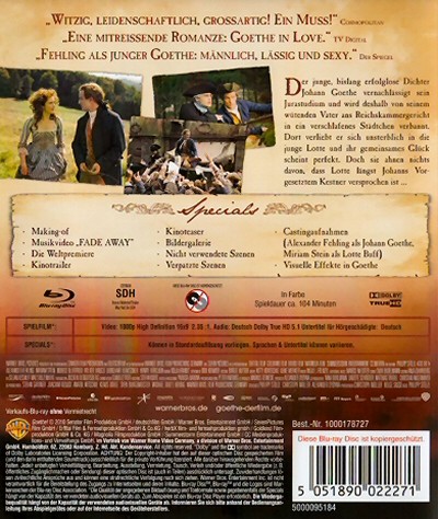 Der junge, bislang erfolglose Dichter Johann Goethe vernachlässigt sein Jura- Studium und wird deshalb von seinem wütenden Vater ans Reichskammergericht in ein verschlafenes Städtchen verbannt. Dort verliebt er sich unsterblich in die junge Lotte und ihr gemeinsames Glück scheint perfekt. Doch sie ahnen nichts davon, dass Lotte längst Johanns Vorgesetzten Kestner versprochen ist...