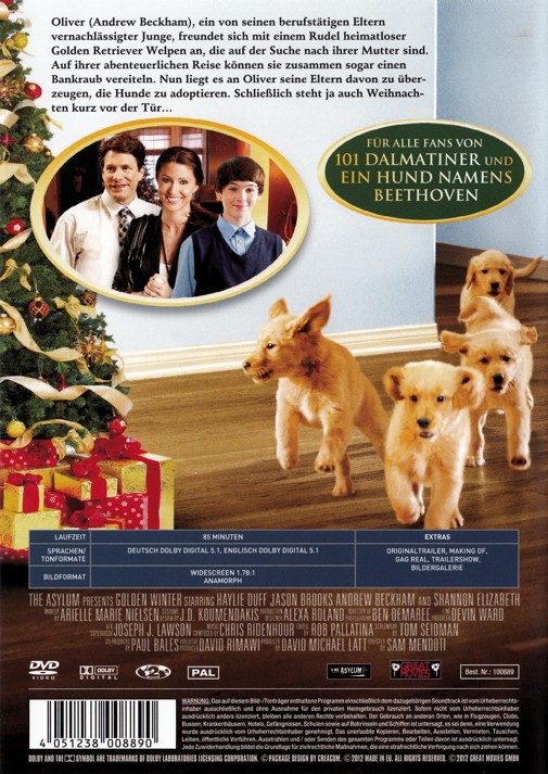 Die Kultfilme "Zurück nach Hause" & "Ein Hund names Beethoven" treffen aufeinander! Ein absolut rührender Familien-Weihnachtsfilm der Macher vom Kultstudio THE ASYLUM, die hier auch einmal eine ganz andere Seite zeigen! INHALT: Jack, ein entlaufener Junge, freundet sich mit einem Rudel heimatloser Hunde an. Zusammen können sie sogar einen Bankräuber stoppen. Jack versucht, seine Eltern davon zu überzeugen, die Hunde zu adoptieren. Schließlich steht ja auch Weihnachten kurz vor der Tür. Für alle Tierfreunde und Fans von "Ein Hunde names Beethoven", "Zurück nach Hause-Die unglaubliche Reise" oder "Air Buddies"! Auch auf Blu-ray erhältlich.